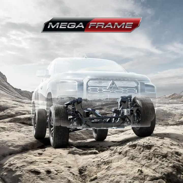 โครงสร้างพัฒนาใหม่หมด ด้วยเหล็กแรงดึงสูง High-Tensile Steel ขนาดใหญ่ขึ้น แข็งแรงขึ้น แต่มีน้ำหนักเบาลง ทำงานผสานช่วงล่างและระบบกันสั่นสะเทือนที่รองรับการบรรทุกหนักและยึดเกาะถนนดีเยี่ยม
