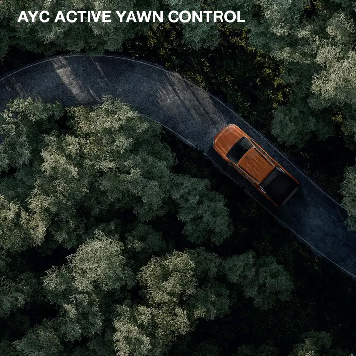 เหนือชั้นกว่าด้วยระบบควบคุมการขับเคลื่อนและสมดุลขณะเข้าโค้ง “แอคทีฟ ยอว์ คอนโทรล (AYC)” โดยระบบจะควบคุมการทำงานของล้อทั้งด้านในและนอกโค้งให้หมุนสัมพันธ์กัน ช่วยสร้างเสถียรภาพในการเข้าโค้งอย่างแม่นยำ ป้องกันอาการดื้อโค้งหรือท้ายปัด