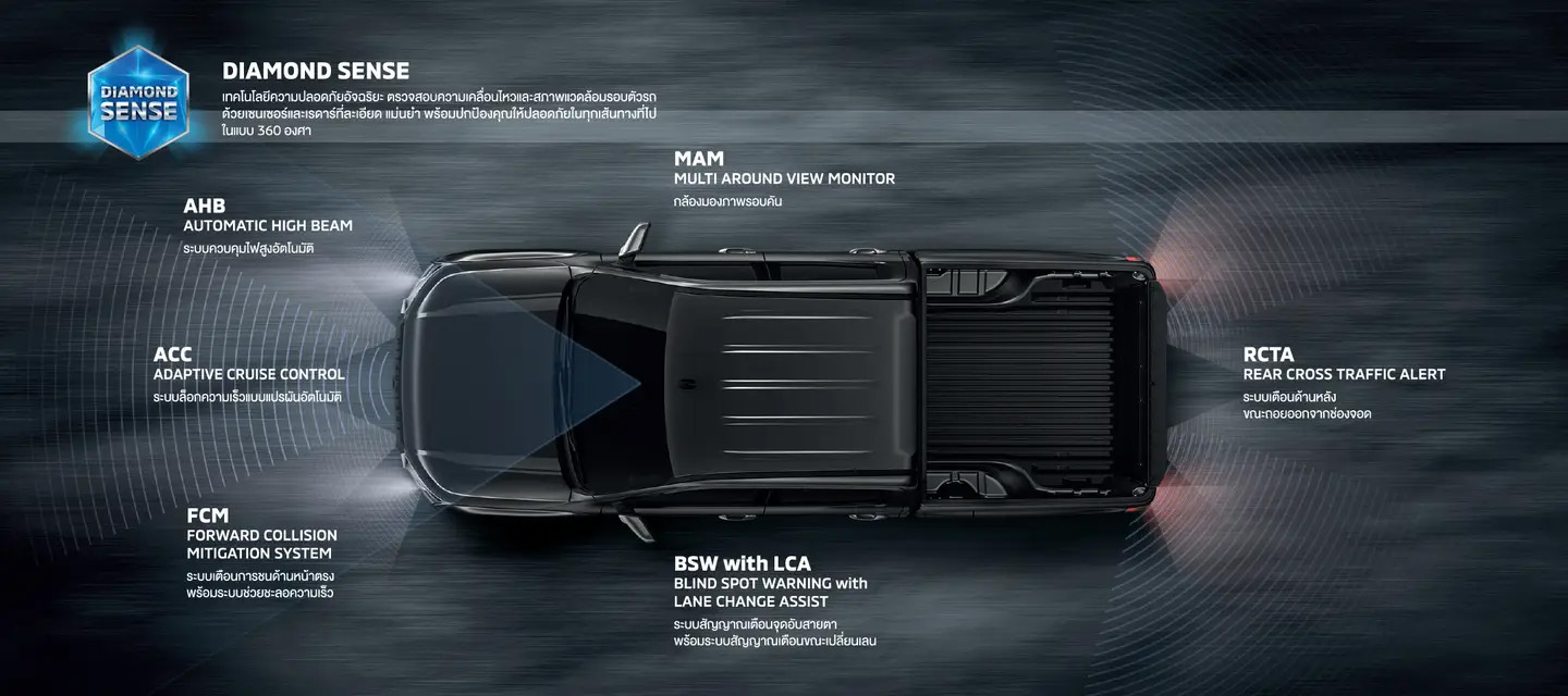 เทคโนโลยีความปลอดภัยอัจฉริยะ ตรวจสอบความเคลื่อนไหวและสภาพแวดล้อมรอบตัวรถด้วยเซนเซอร์และเรดาร์ที่ละเอียด แม่นยำ พร้อมปกป้องคุณให้ปลอดภัยในทุกเส้นทางที่ไปในแบบ 360 องศา